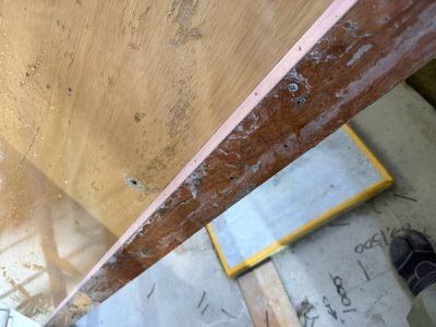 柱の角の大面側の枠、面木も転用できるように壊れないように加工してる。